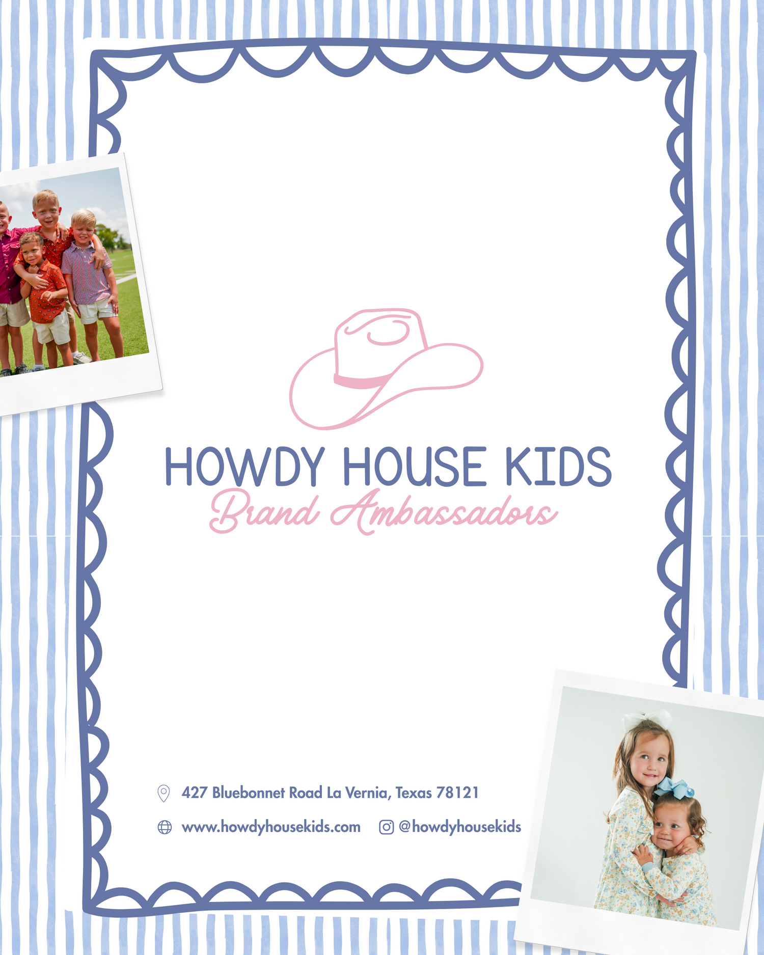Curious about what it means to represent our brand? We’ve put together a quick overview that highlights the perks, expectations, and opportunities of becoming a Howdy House Kids Brand Ambassador!