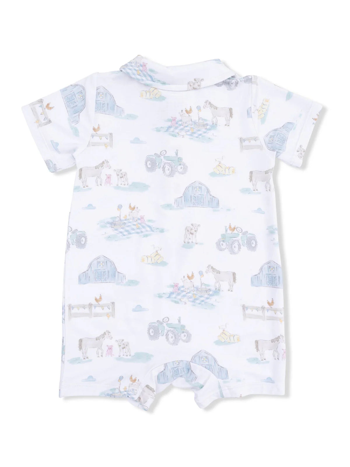 Angel Dear Farm Animals Party Polo Baby Boys Bamboo Shortie Romper