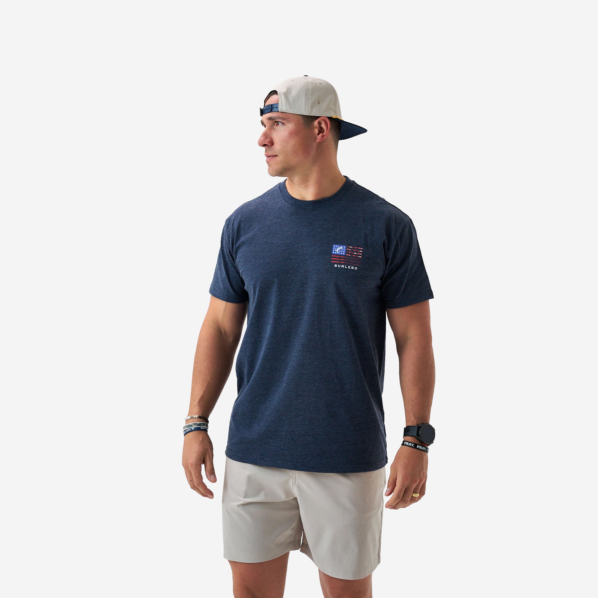 Burlebo Heather Navy Fishing USA Short Sleeve Men's Short Sleeve Shirt