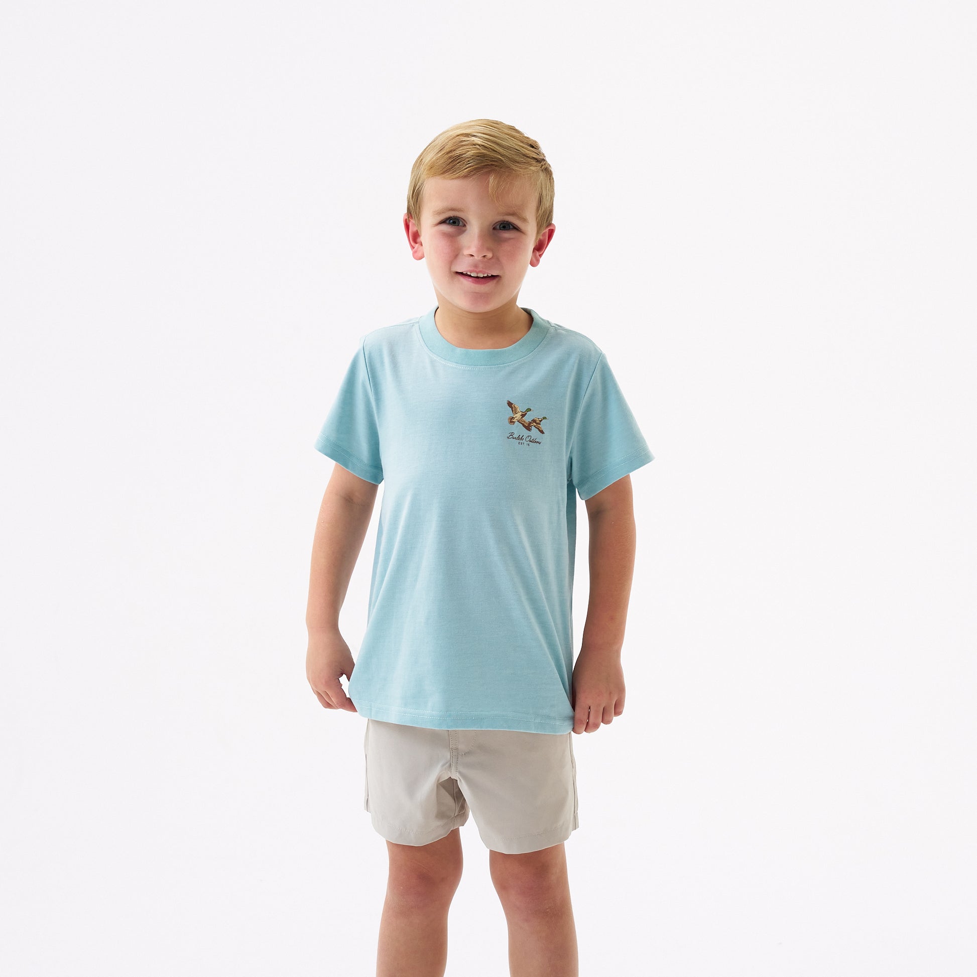 Burlebo Heather Sky Blue Flying Mallards Short Sleeve Boys Shirt
