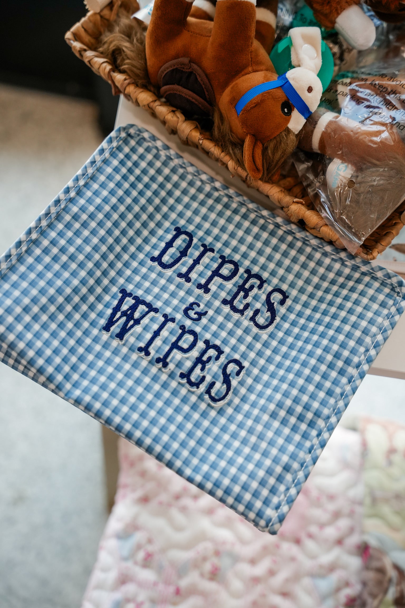 Dipes & Wipes Bag Embroidered TRVL Large Roadie Blue Rodeo Check!