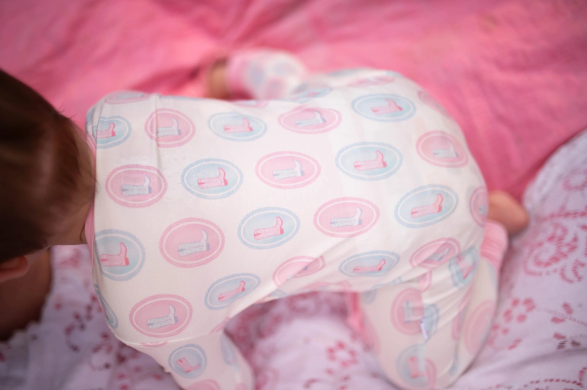 Hamner Hill x Petite Paloma Pastel Oval Boots Ruffle Girls Bamboo Onesie