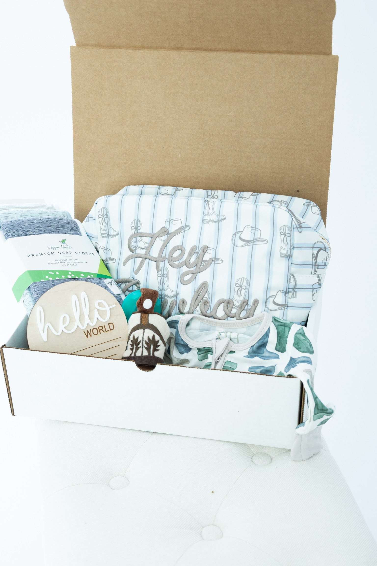 Give the gift of pure luxury with the Ultimate Baby Shower Gift Boxes! Thoughtfully curated with premium essentials, these boxes are the perfect way to celebrate a growing family. Thoughtfully packaged by our Texas team and filled with soft bamboo babywear, cozy swaddles, personalized name signs, plush stuffed animals, books & more. These sets have everything new parents need to welcome their little one in comfort and style. With high-quality, breathable fabrics and charming personalized details, these bundles ensure both baby and parents feel extra special. It’s not just a gift, it’s a warm embrace for the newest member of the family!