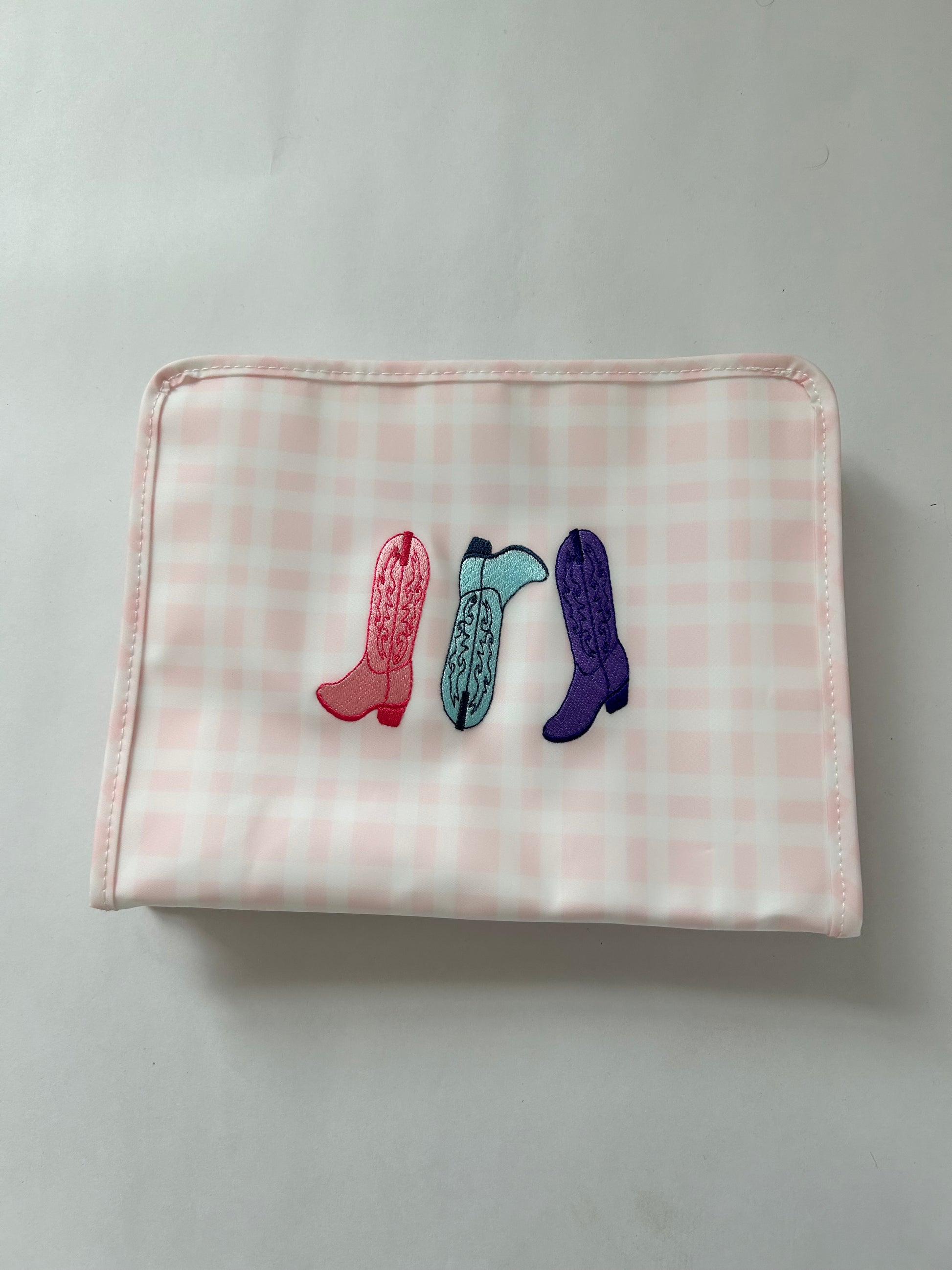 TRVL Pink Plaid with Embroidered Boots Large Roadie Bag